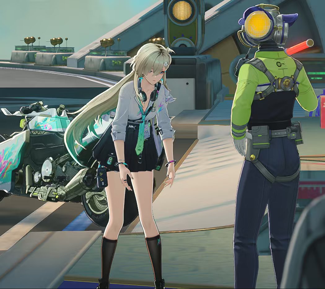 最后是人物印象,我发现鸣潮最大的特点就是初看立绘平平无奇,建模直接力挽狂澜。上述的图让我感到了琳奈作为学院学生的活泼开朗(太美好啦)之后是莫宁的建模,总感觉和菲比、千咲是一个脸部建模,圆圆的。最后是网传的人造岁主,剧情前期的出现让我有一种 LOL 里星守卡莎的感觉。