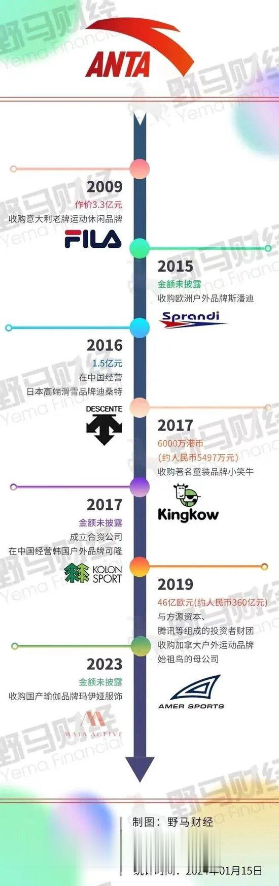 直到2019年2月,安踏收购亚玛芬体育,获始祖鸟、萨洛蒙等品牌。
