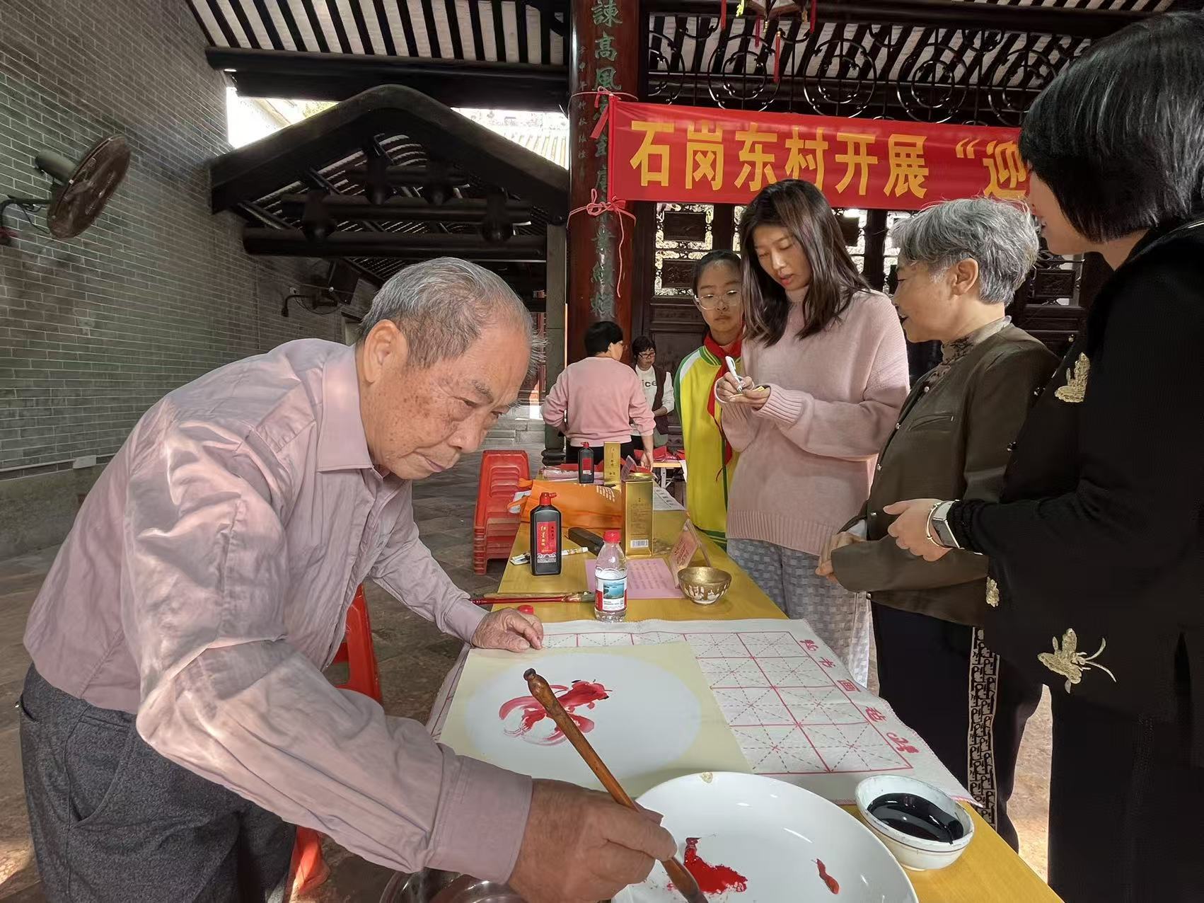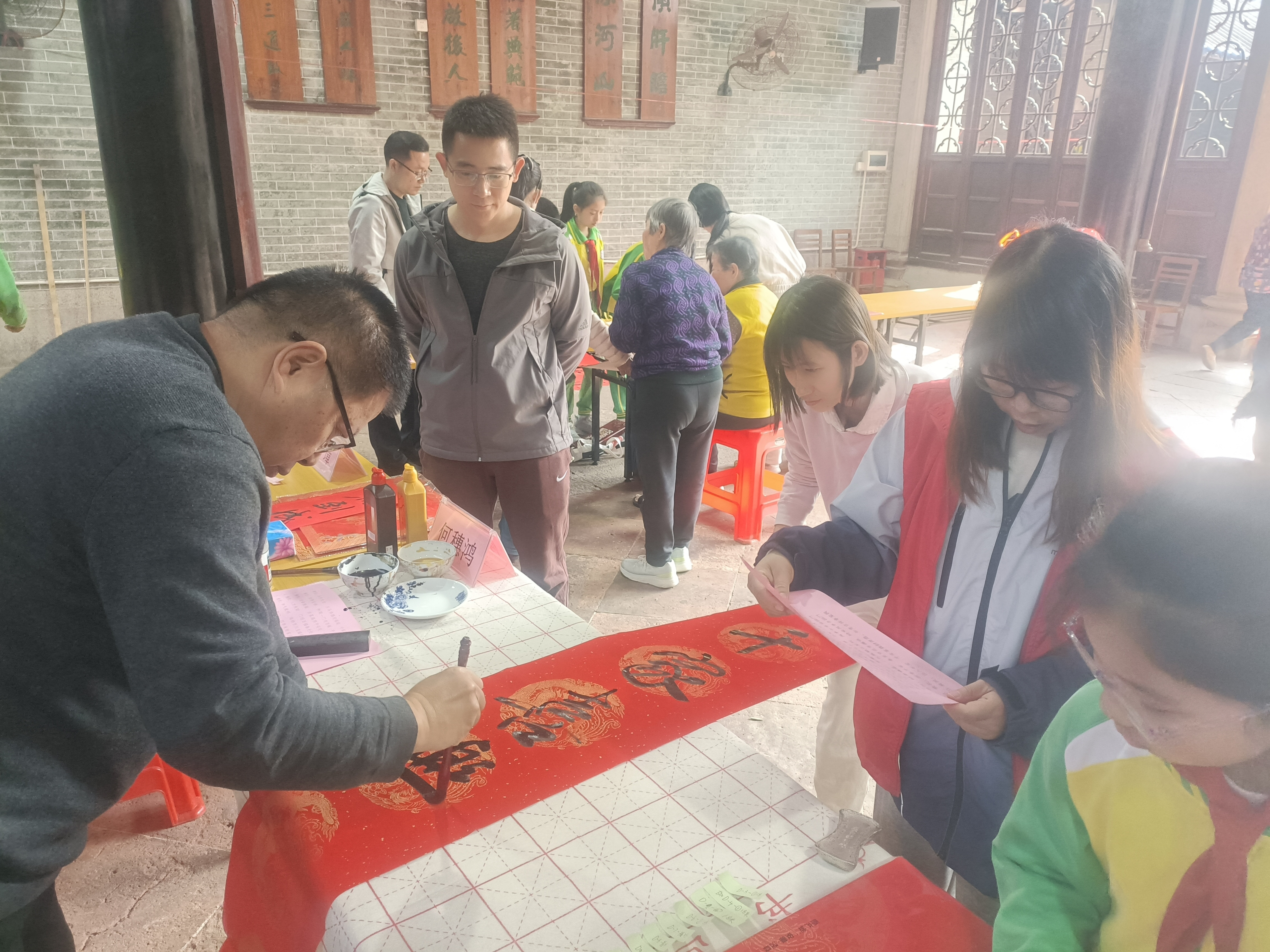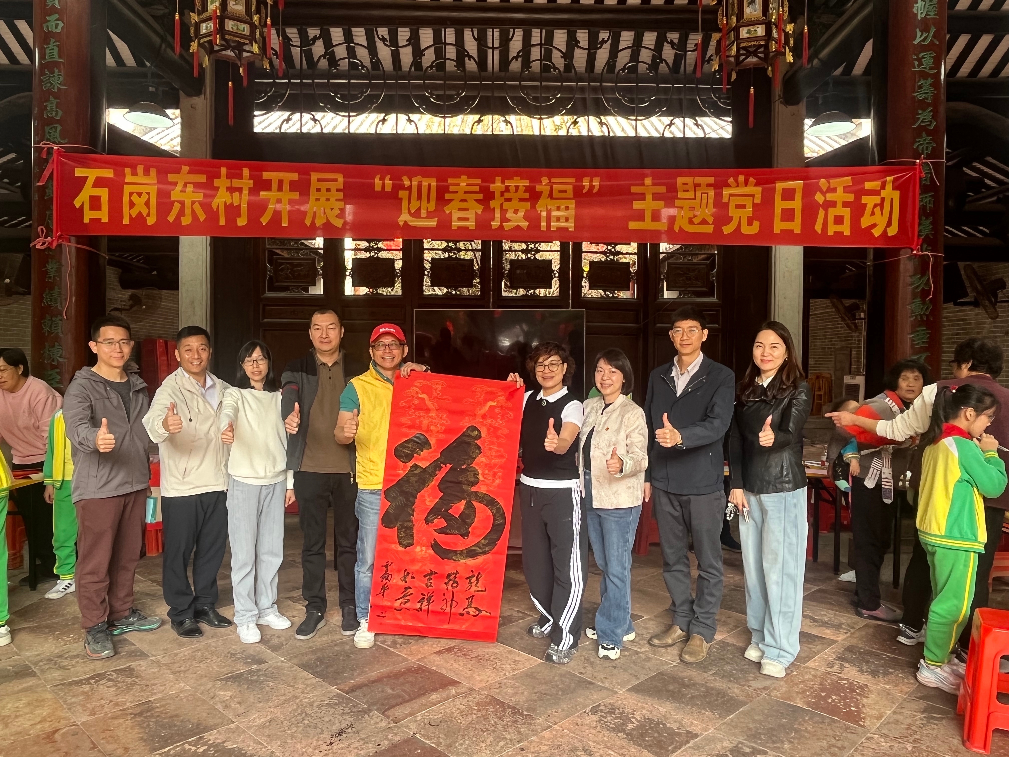 新春将至,年味渐浓。为深入践行党建引领下的文化育人使命,弘扬中华优秀传统民俗文化億策略,1月29日上午,番禺区石岗东村党委携手区侨联、石岗小学党支部,在石岗东村张氏大宗祠(滋德堂)开展“迎新春、送春联”主题惠民活动,以笔墨传情,为村民及来穗人员送上新春美好祝福。